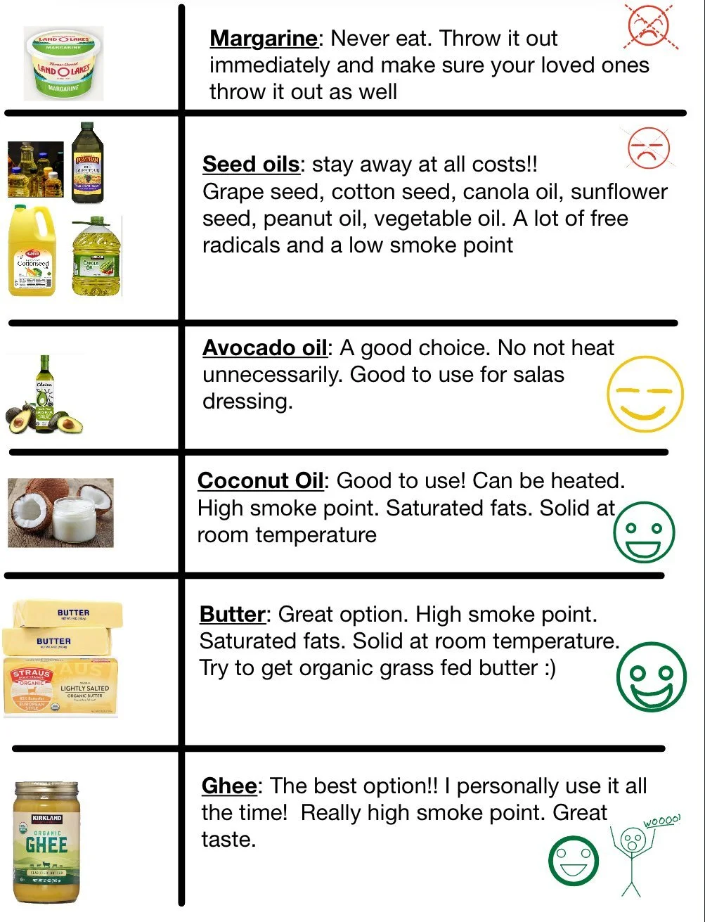 Now that we’ve covered the basics of how oils affect your health, let’s talk about which oils you should use and when.